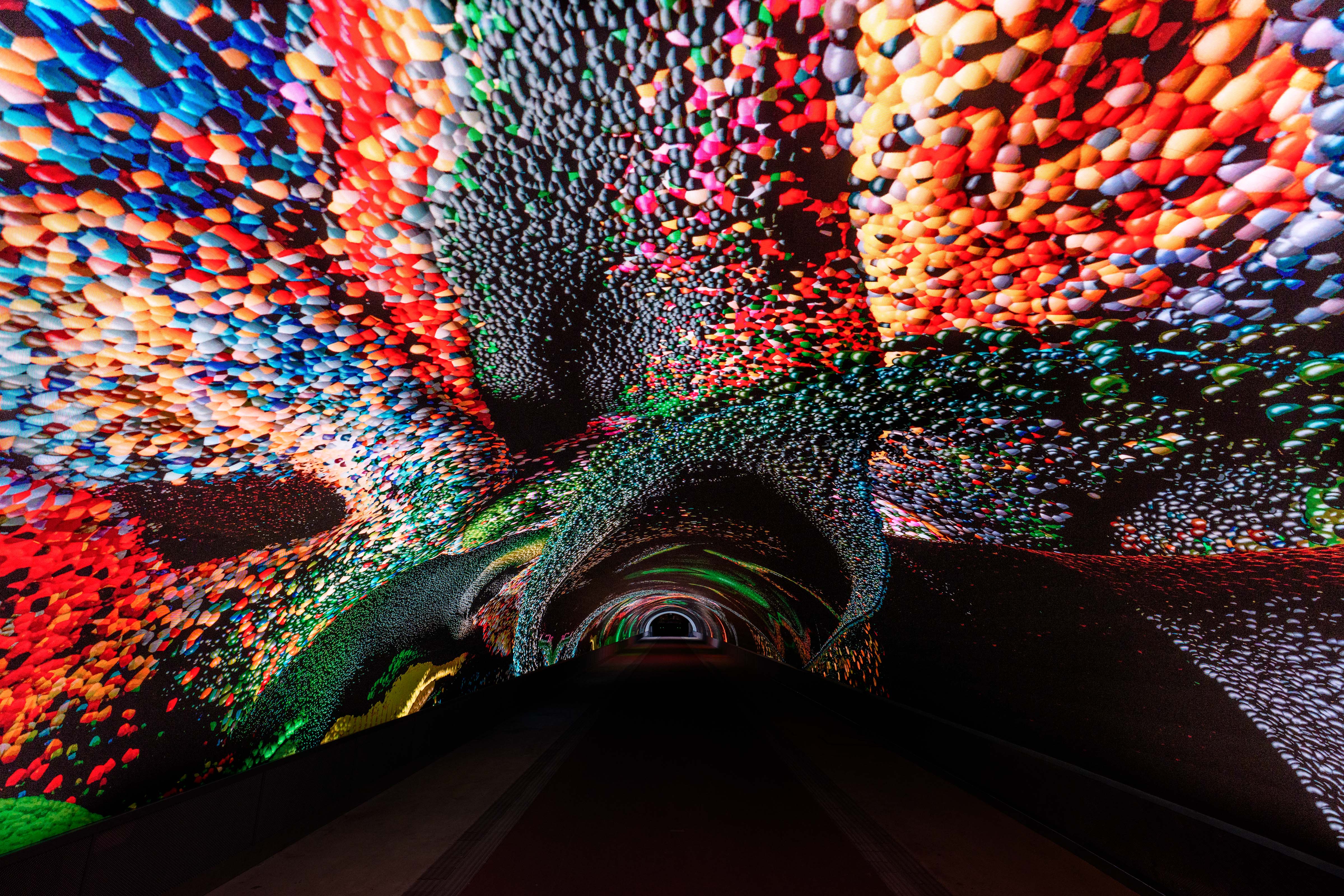 Data Tunnel utilizza il più grande dataset naturale al mondo, chiamato Large Nature Model. I dati sono raccolti ed eticamente curati, utilizzando energie sostenibili. Milioni di immagini della natura vengono trasformate in un’esperienza immersiva tridimensionale all’interno del tunnel. Lo chiamo una “scultura di dati”: l’AI diventa un pennello pensante che dipinge con i dati, creando un collegamento tra le persone, la natura e la cultura.