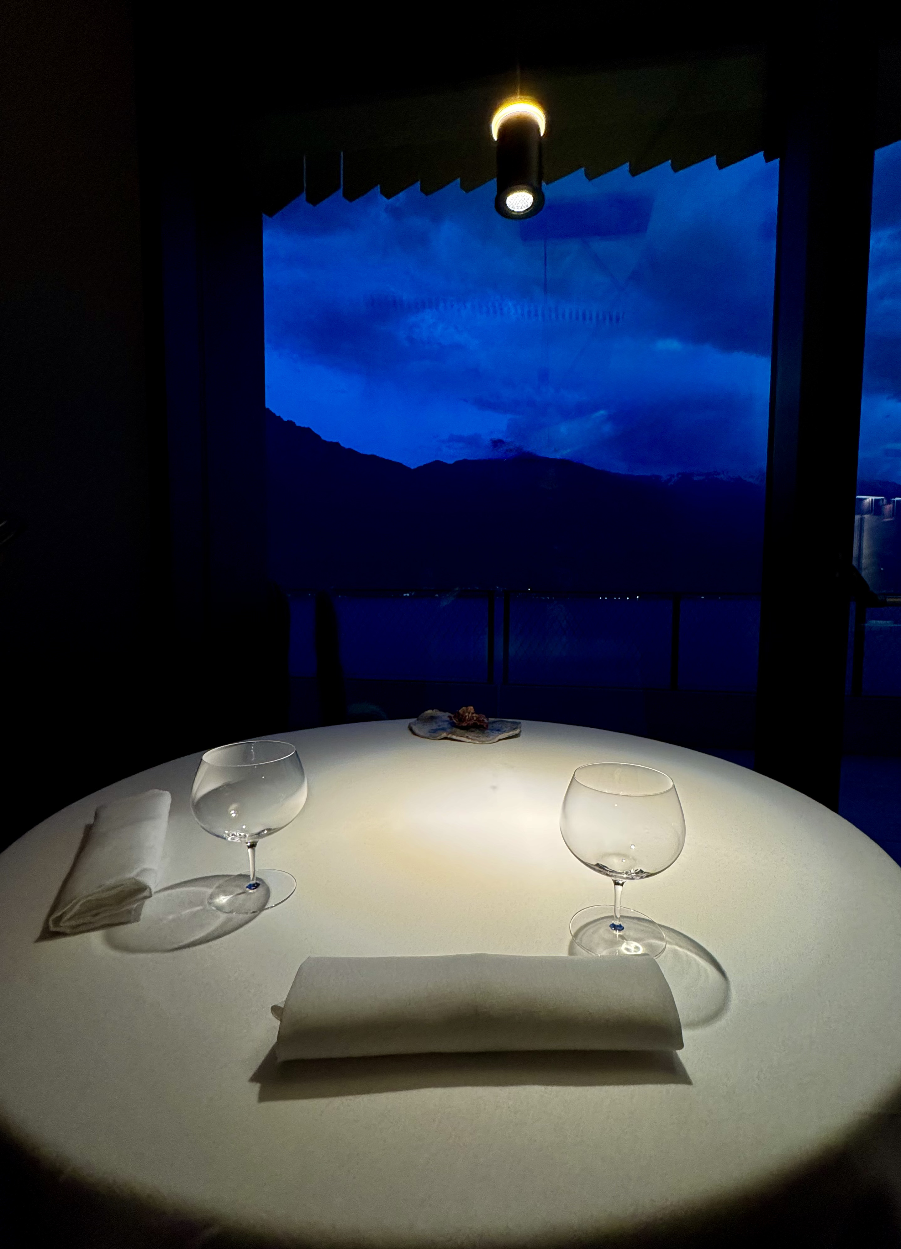In sala, il racconto continua con una squadra giovane e preparata. Antonio, sommelier dalla personalità decisa, sorprende con abbinamenti mai banali — un Marsala 2004 sul pesce, uno Champagne artigianale sulle patate — mentre Davide è una presenza affilata, attenta, capace di muoversi tra i tavoli senza mai distogliere dal paesaggio. Il dessert gioca sui ricordi d’infanzia dello chef — polenta, latte, stracciatella — ma si chiude con intelligenza, evitando ogni tentazione nostalgica.